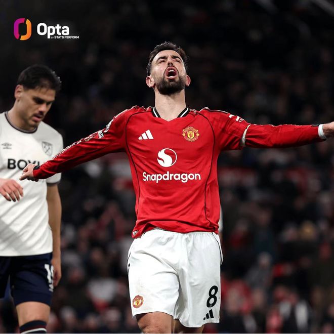 布鲁诺·费尔南德斯罕见错失绝杀良机,曼联主场憾平西汉姆